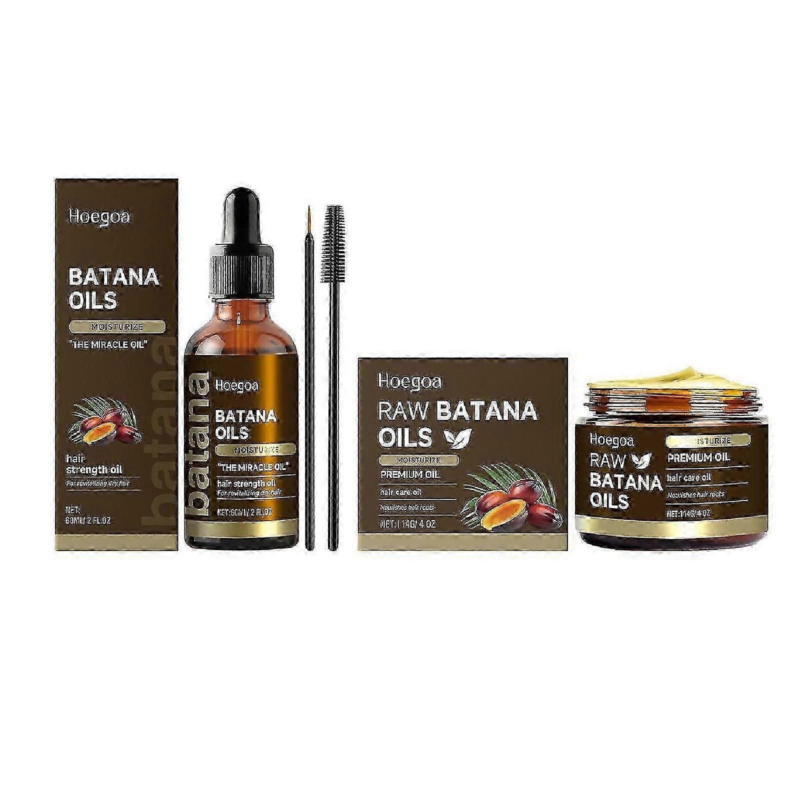 100% Raw & Unrefined Batana Oil from Honduras Experience the power of pure, unprocessed Batana oil ethically sourced from Honduras and inspired by Dr. Sebis natural healing traditions. Rich in omega fatty acids, this miracle oil helps nourish your scalp, promote thicker hair, and support stronger edges. Organic Hair Growth Set with Lash & Brow Tools More than just oil this 4-piece set includes a 4 oz bottle of raw Batana oil, a 4.2 oz moisturizing Batana paste, a lash wand, and a brow brush for targeted application. Ideal for revitalizing dry scalp, restoring thinning edges, and enhancing brow/lash growth. Edges, Brows & Eyelashes All Covered Whether you're repairing broken edges or encouraging fuller brows and lashes, this kit offers a complete solution for your hair-care routine. The brow brush and lash wand allow easy, mess-free application right where you need it. Strengthens & Revives Damaged Hair Naturally Restore moisture, shine, and strength to brittle or overprocessed hair. Batana oil deeply penetrates the scalp and strands, encouraging regrowth and reducing breakage without harsh chemicals or fillers.
