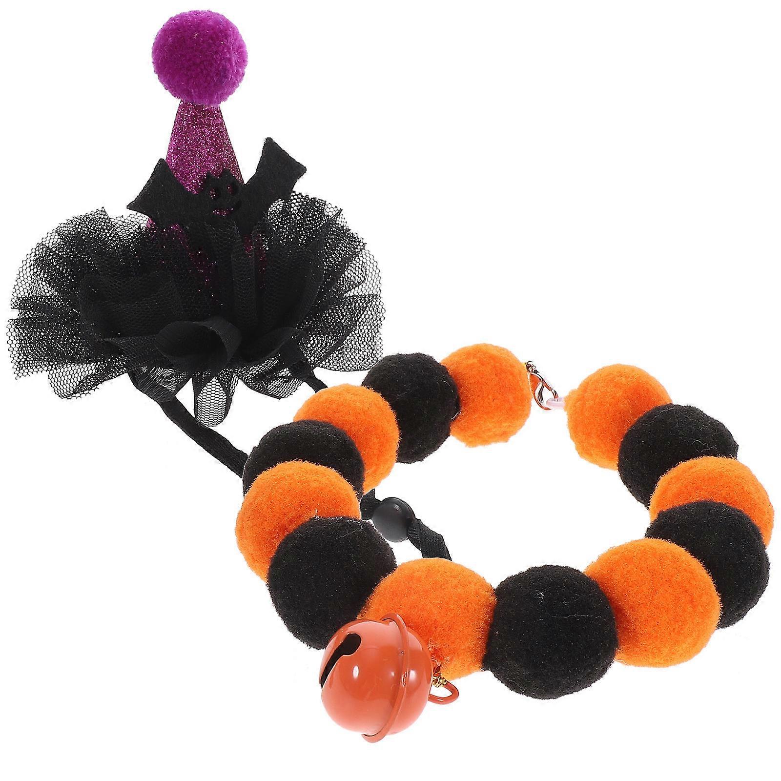 Halloween Themed Cat Collar Pet Costume Set for Halloween Party with Bell 1 Set