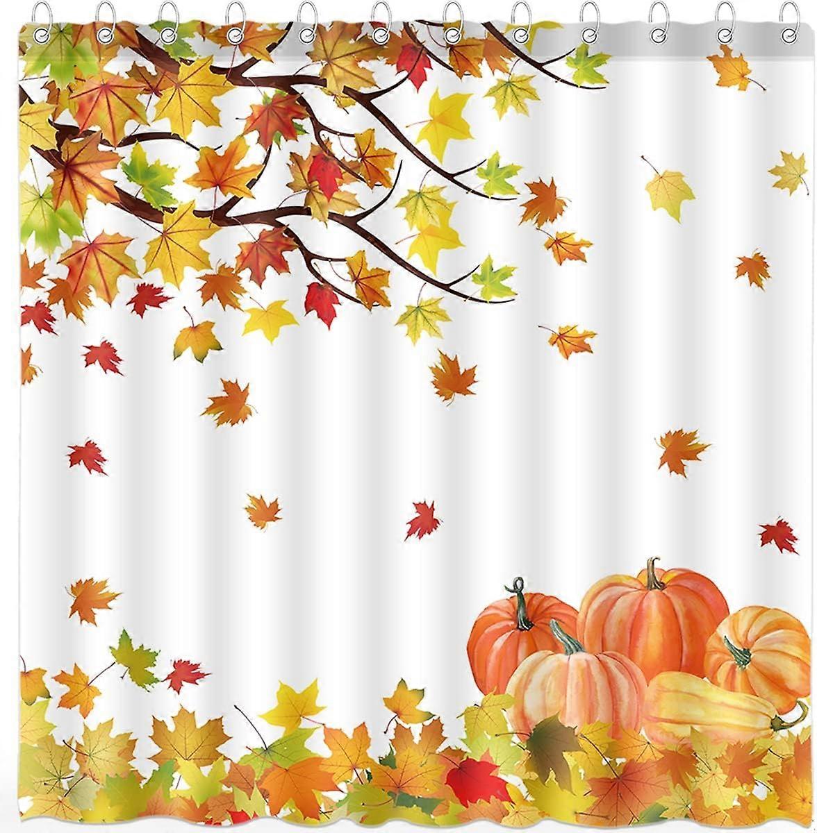 Fall Shower Curtain Set with Hooks Autumn Pumpkin Farmhouse Romantic Falling Maple leaf Thanksgiving Home Bathroom Bathtubs Decor Easy Care Machine Wa