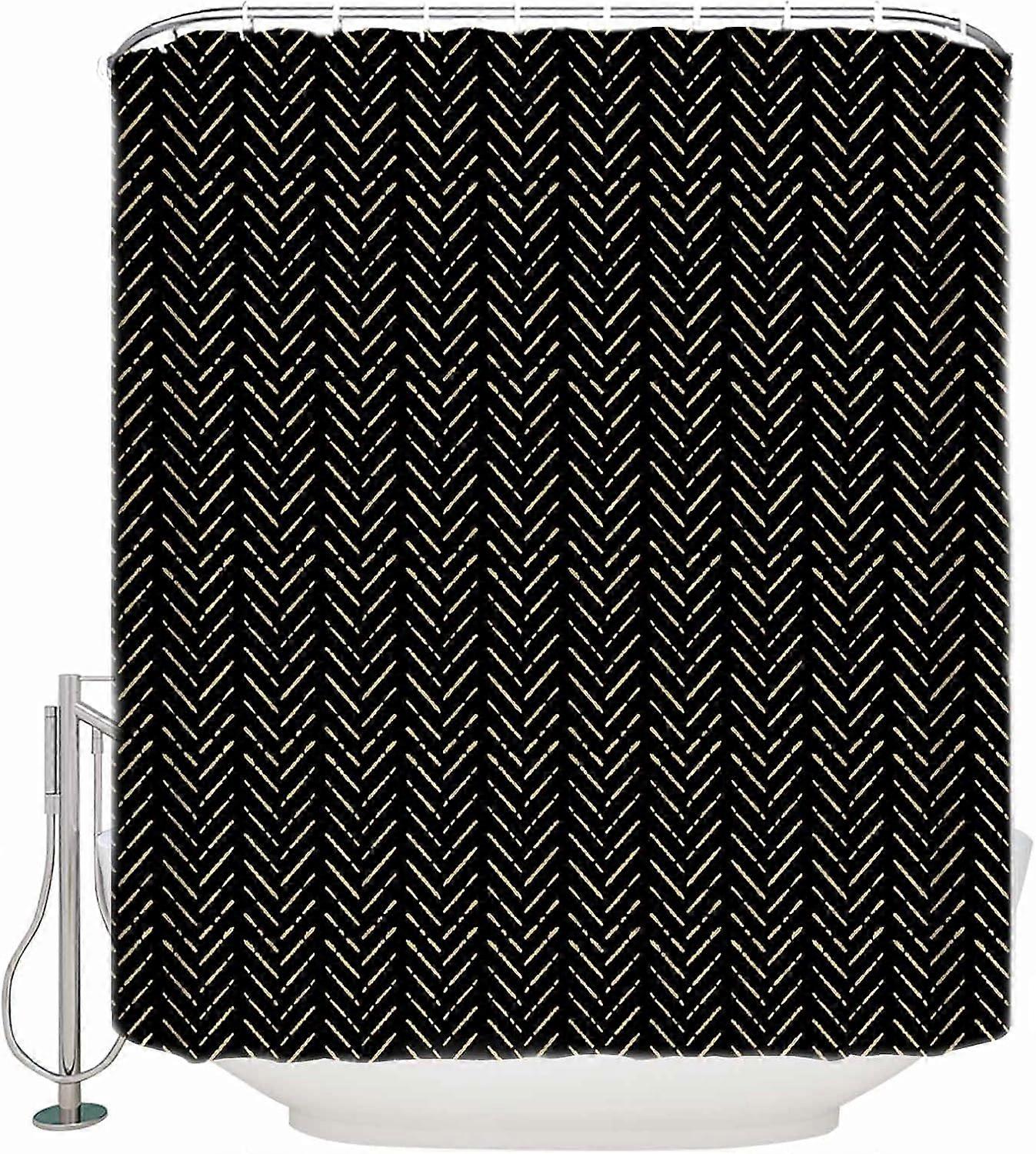 Black Gold Striped Shower Curtain Set with Hook 72" x 84",Washable Cloth Polyester Fabric Shower+Curtain,Waterproof Bath Curtains for Bathroom,Showers