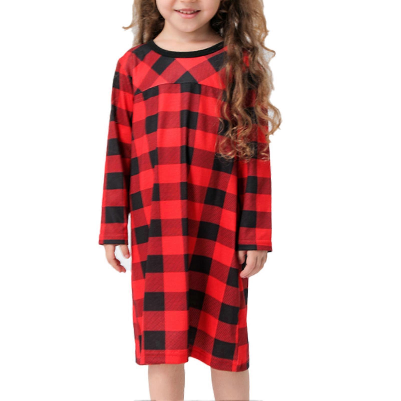 Christmas Family Set Plaid Print Long Sleeve Loose Lint Free Family Pajamas Matching Sets for Parent Child Pets Red GIRL 4-5Y