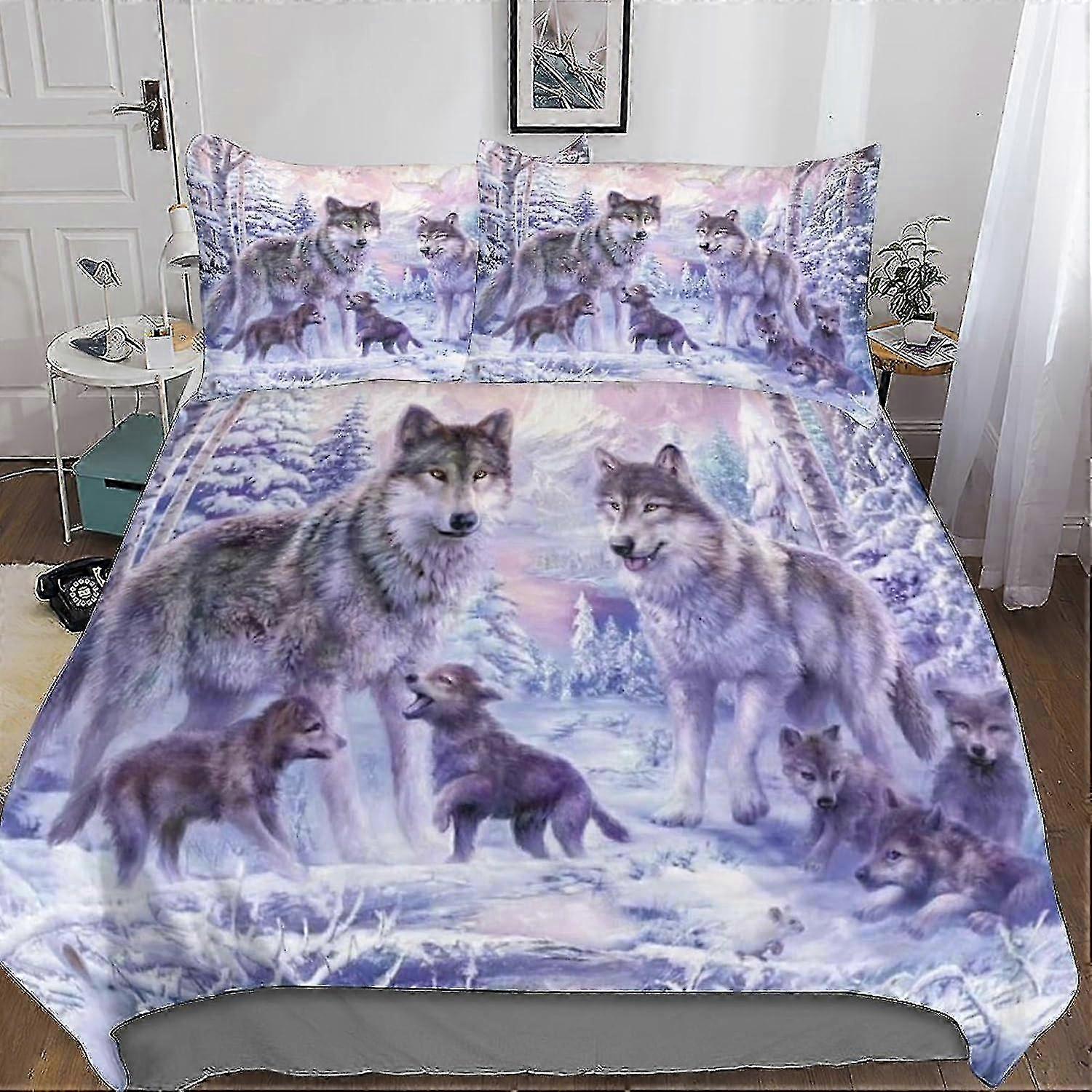 EKENOZ Wolf Duvet Cover Set, 3D Animal Quilt Cover Bedding Set with Pillowcases,Soft Microfiber for Adults Teenager Kids 3 Pieces Double