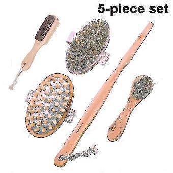 مجموعة فرشاة الجسم الجافة بالفرشاة التصريف اللمفاوي وتقشير البشرة - طقم سبا شعيرات طبيعي - جهاز تنقية الظهر بمقبض طويل ، مدلك وإقشر للوجه