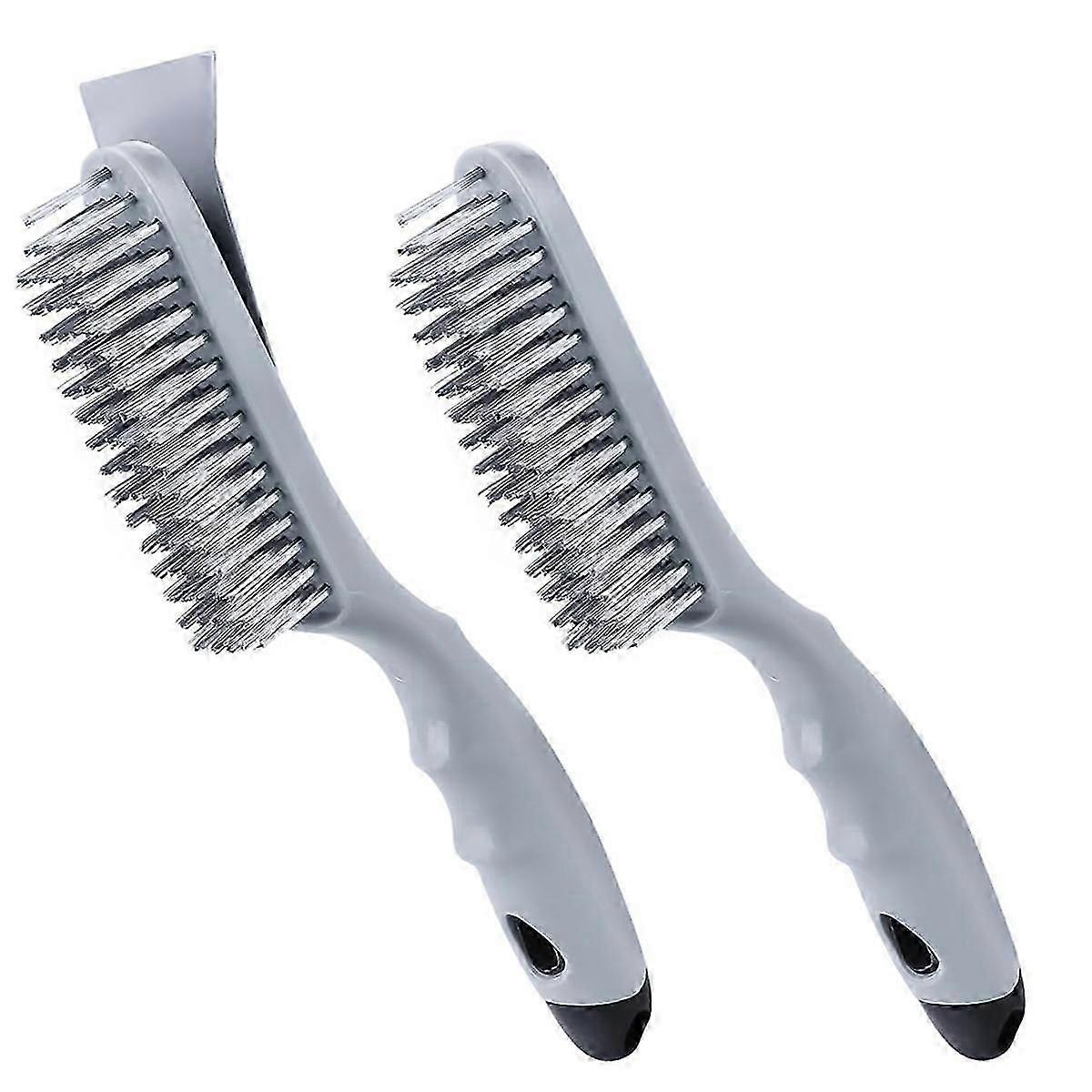 [Galvanized Stainless Steel Wire] Stainless steel brush using galvanized stainless steel bristles, with excellent resistance, ductility and toughness. Hardened wire reduces wire breakage, helps you quickly remove dirt from different types, and is suitable for heavy scrubbing, descaling and welding dust. [Ergonomic Handle Design] raised groove on the inside of the handle is fully ergonomic, which provides a strong grip that allows you to grip and easily control the brush to reach many places. [Hanging Hole] of -duty wire brush has 2 holes, which is easy to store the wire brush and keep it dry when it is next used, keeping your living space clean and helping to make rational use of the limited space. [Function Application] The wire brush can efficiently remove paint stains, rust, welding, slag, scale, remove excess deposits, and scrape all deposits. It can also be used to clean doors, , sliding doors, floor tiles, walls and so on. [Package Includes] 2Pcs galvanized stainless steel wire brushes, 7 bristles are hard,wear and , in which,one stainless steel brush with a metal scraper. Colour:Gray Material:Steel + Plastic Package Contents: 2 x Steel Wire Brush Only the above package content, other products are not included. Note: Light reflection and different displays may cause the color of the item in the picture a little different from the real thing. The measurement allowed error is +/- 1-3cm.