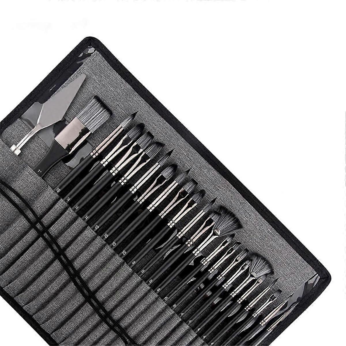 25Piece Paint Brush Set,Wooden Handled Brushes with Canvas Brush Case, Professional Oil, Acrylic and Watercolor Painting