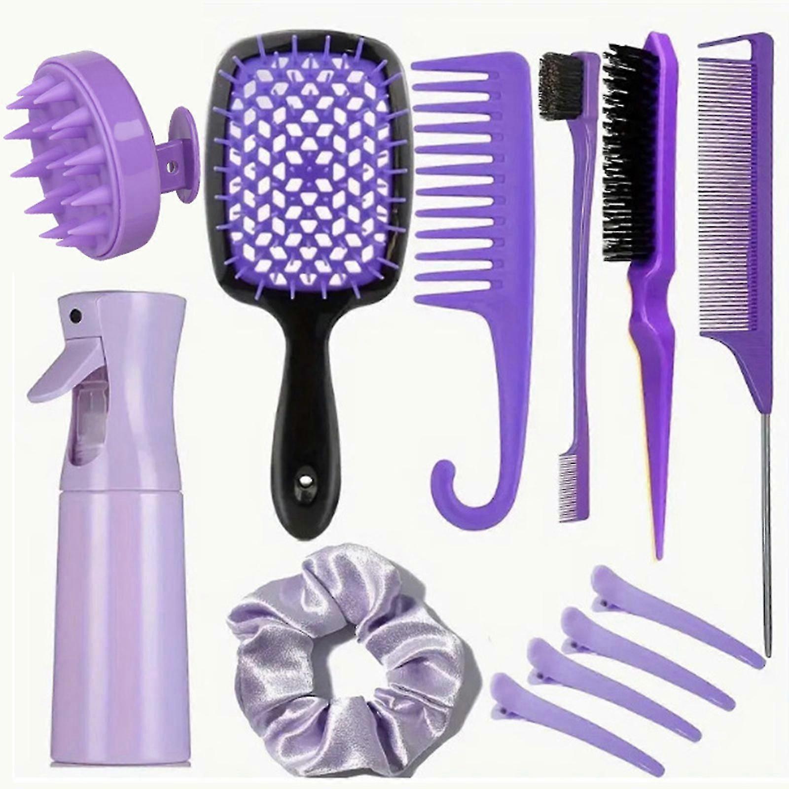 Hair Styling Comb Hair Brush Set, Duckbill Clips, Double Sided Edge Brush for Edge & Back Brushing, Combing, Slicking Hair for Women Girls