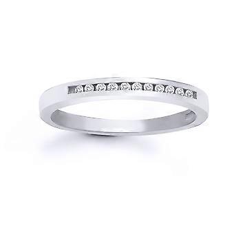 Jewelco London Solid 9ct White Gold Channel Set Round H I1 0.1ct Diamond Dainty Band Eternity Ring 2.5mm