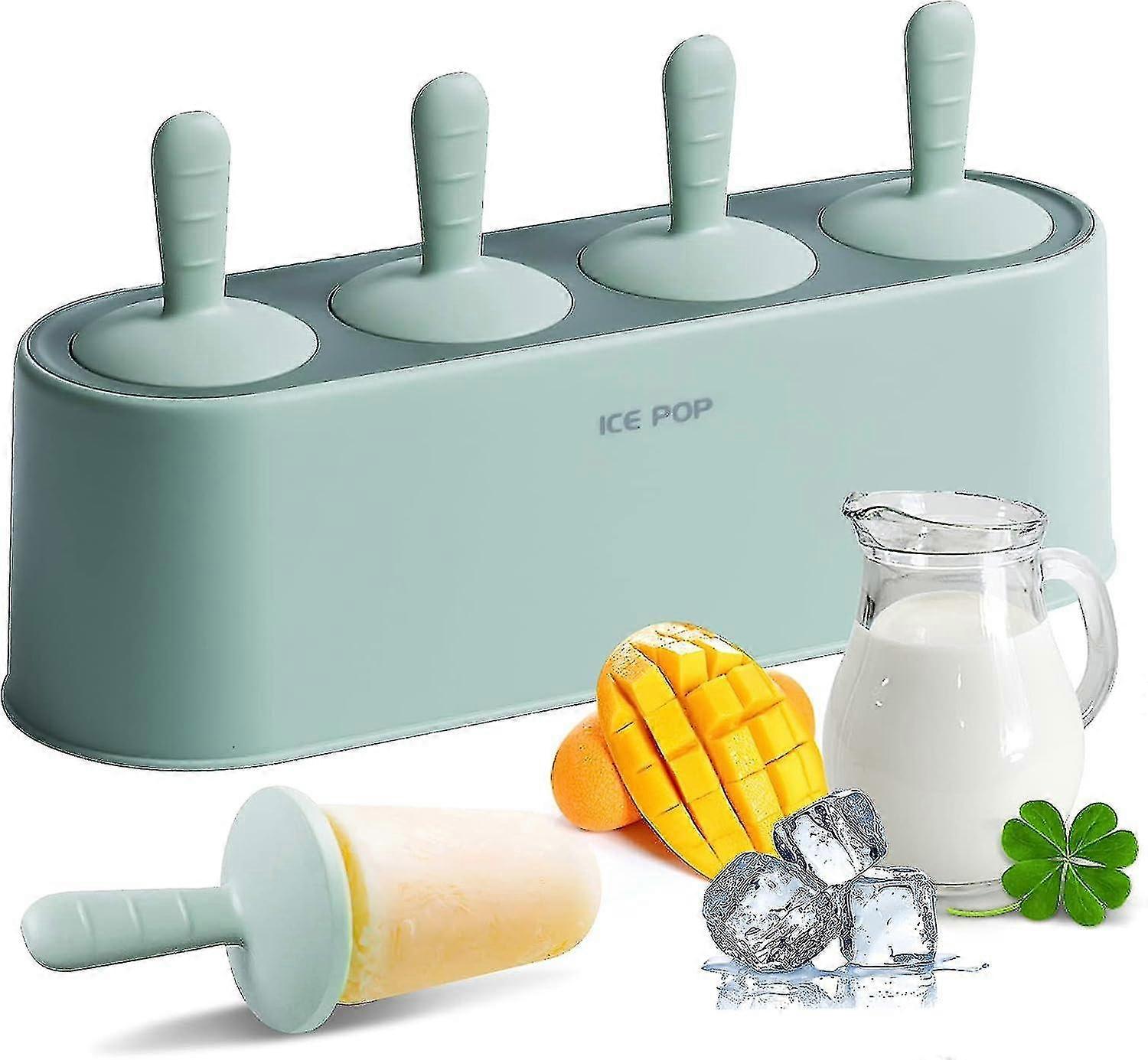 Popsicle Mold Set 4 Pieces Homemade Silicone Popsicle Maker Easy Release Ice Cream Molds Reusable Diy Pop Molds (green)