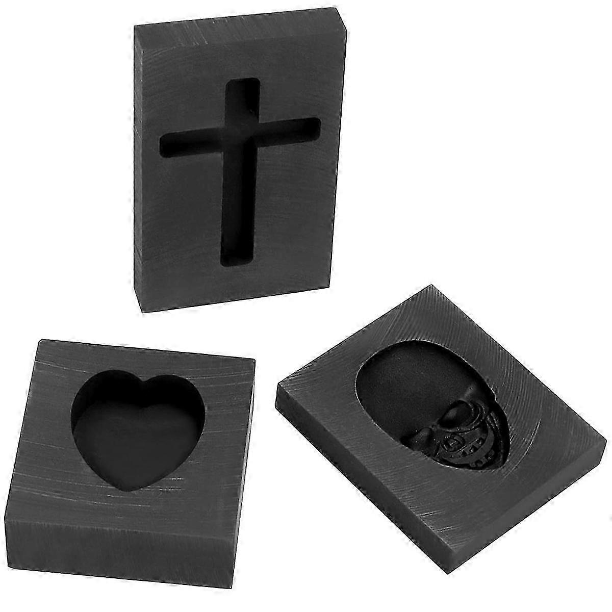 Graphite Casting Mold Set, 3 Pcs Skull, & Heart Casting Ingot Mold, Metal Refining Scrap Mold for Smelting Brass