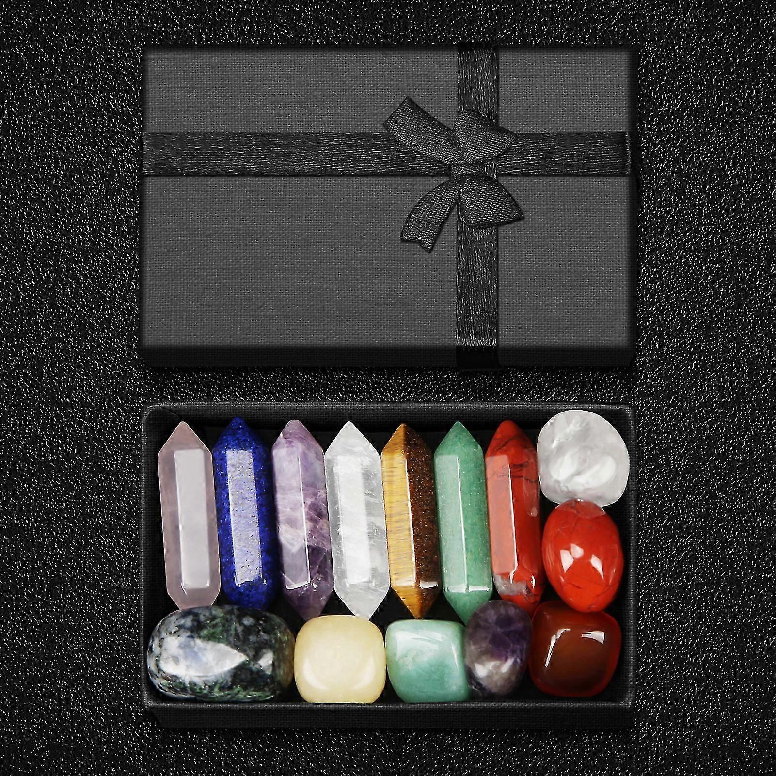 Healing Crystal Set with Exquisite Box Natural Stone Tumbled Polished Column and Blocks in Different Colors for Yoga