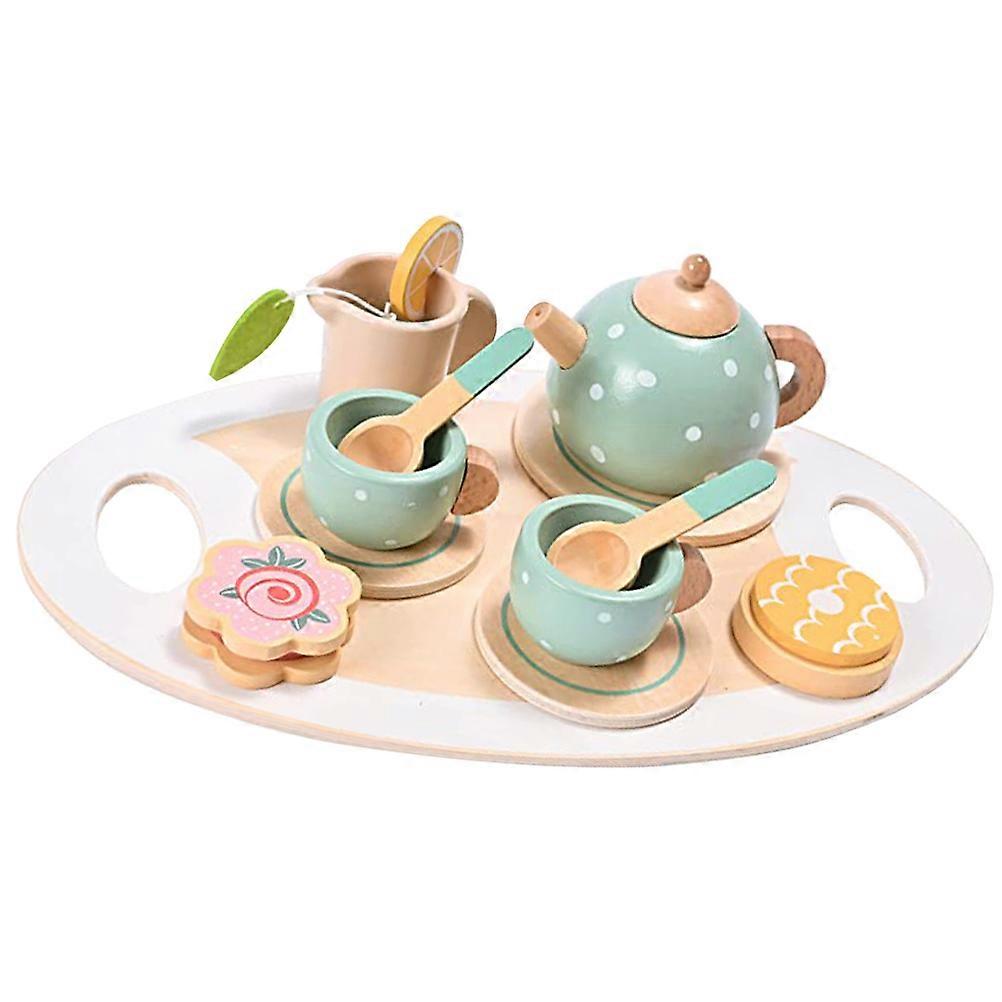 Wooden Tea Party Play Set with Safe Edges, Bright Colors & Pretend Play Kitchen Design for Kids Ages 3 and Up