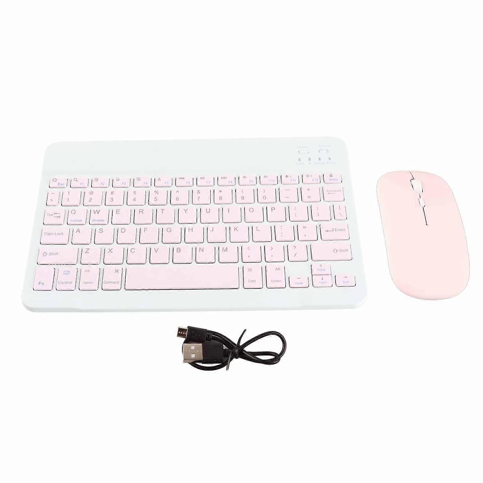 10 Inch Bluetooth Keyboard Set USB Charging Ultra Thin Quiet Wireless Keyboard with DPI Mouse for Cellphone Laptop Pink