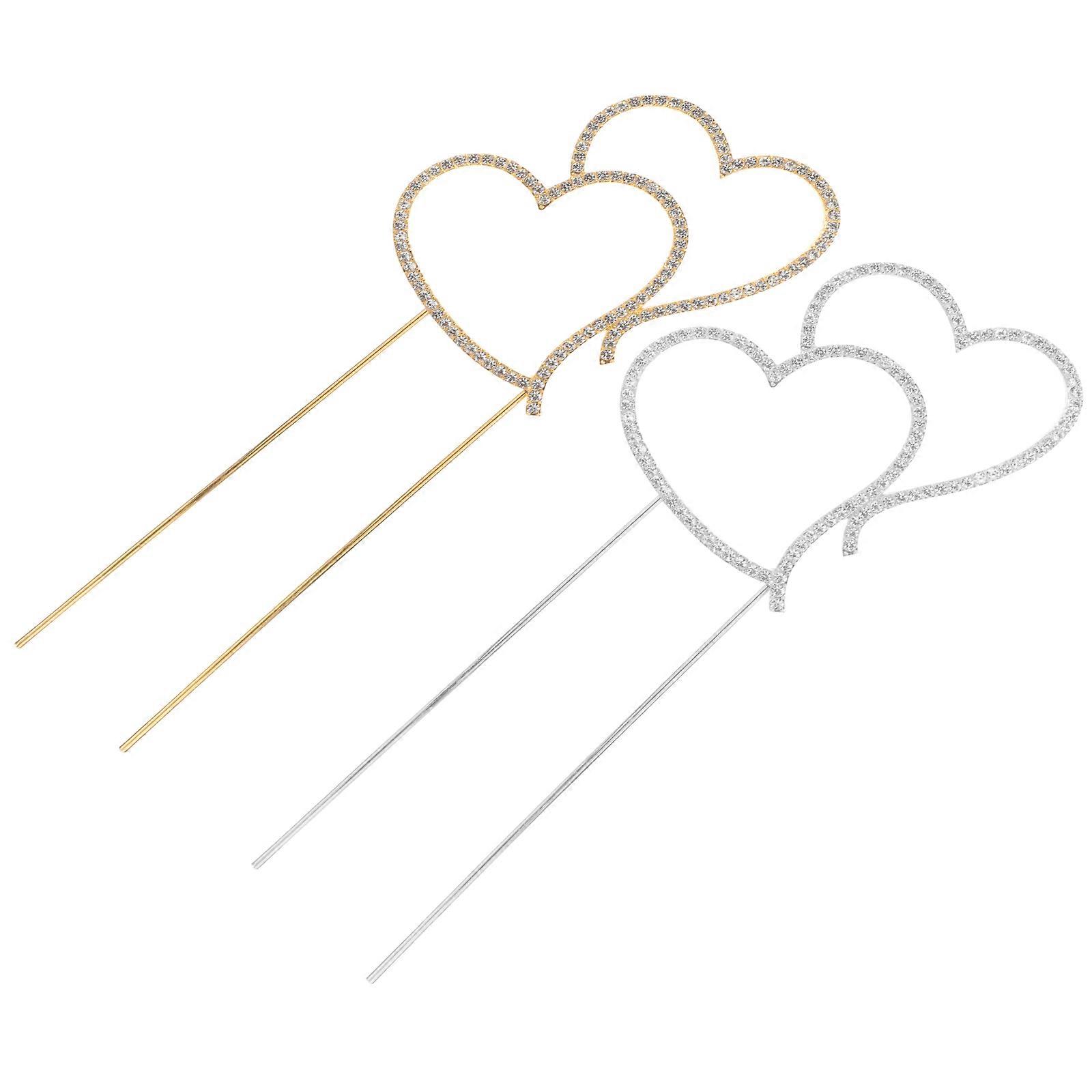 Assorted Color Heart Cake Decorations Alloy Cupcake Toppers for Birthday and Wedding Party 2pcs