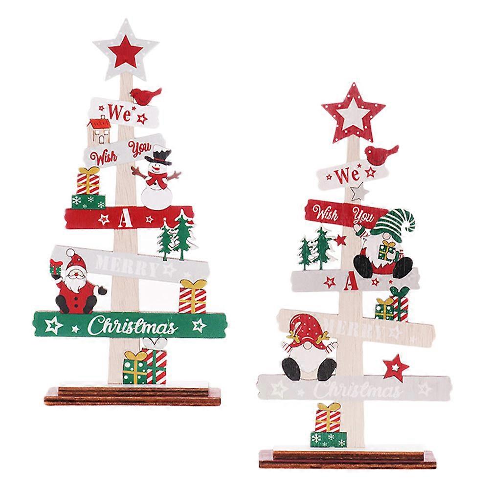Assorted Color Wooden Christmas Tree Ornaments 2Pcs Designed For Festive Holiday Desktop Decoration Style