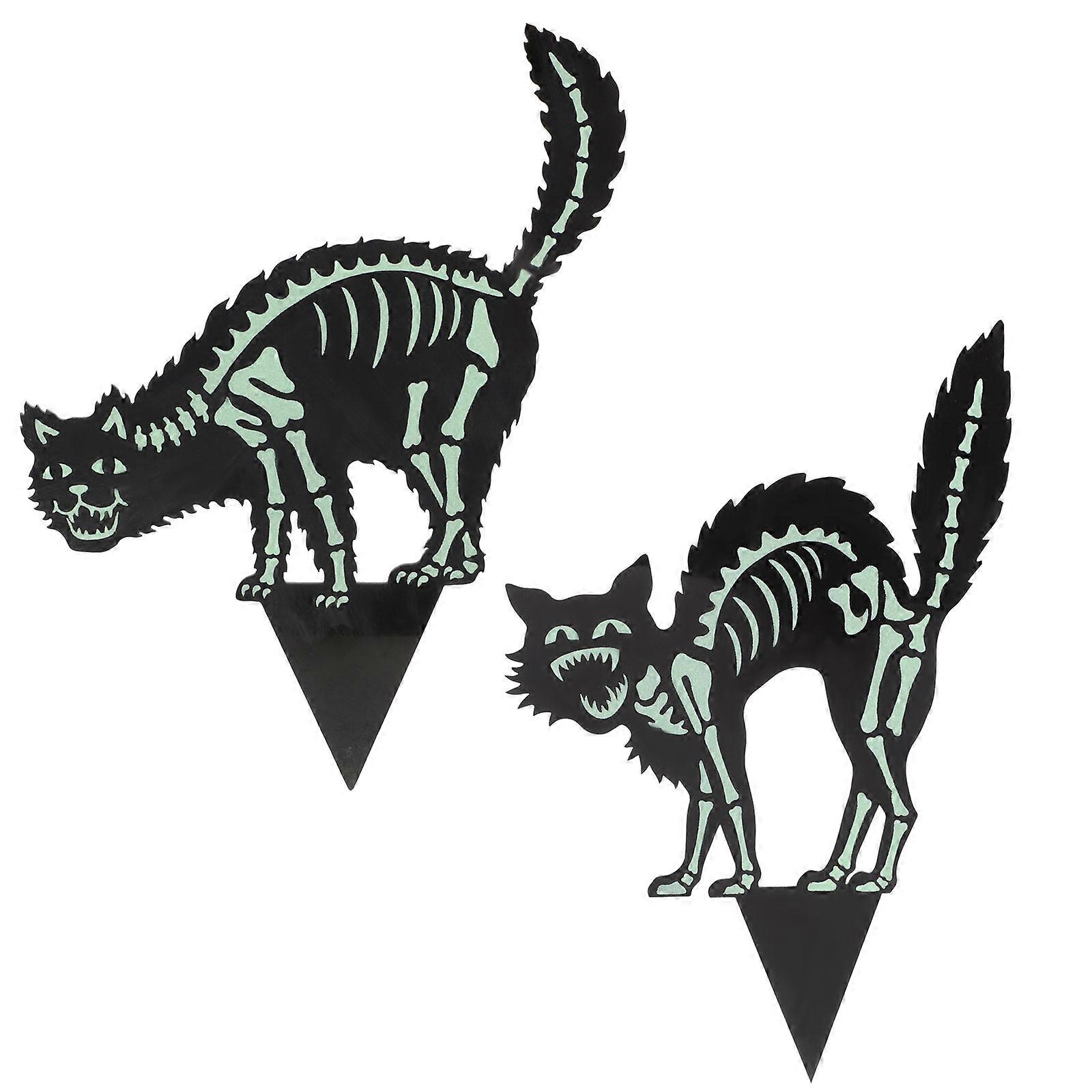 Assorted Color Halloween Yard Decor 2Pcs Skeleton Cat Acrylic Stakes for Outdoor Decoration in Gardens with Waterproof Features