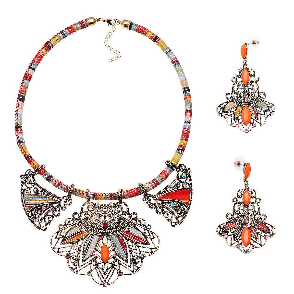 Bohemian Jewelry Set Bib Necklace And Earrings Set For Women Assorted Color Decoration 3Pcs