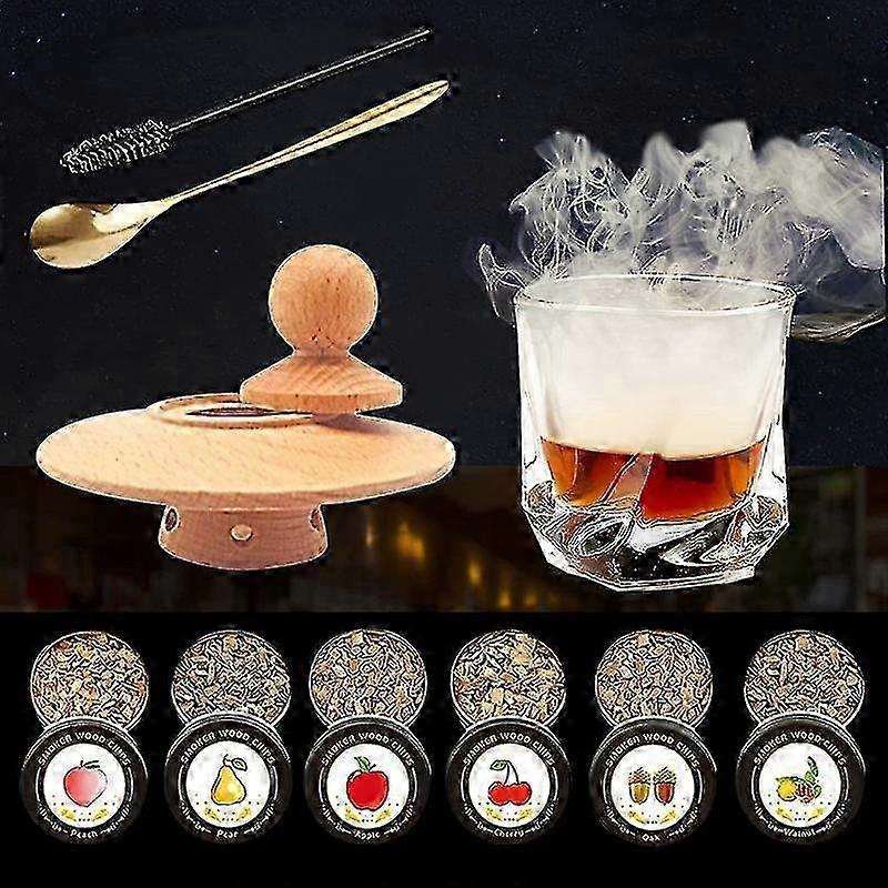 6 FlavoursYou will get flavoured wood chips with , cherry, pecan, , pear and peach. At the same time, we provide you lid, cleaning brush, metal spoon, filter. The 6-hole design at the bottom of the lid effectively improves the efficiency of smoke extraction and the stainless steel filter isolates the residue of wood chips. After use, you can clean it with the brush. Safe MaterialThe wood chips of the old-fashioned cocktail smoke making kit contain no artificial flavoring ingredients. They are air dried at appropriate humidity to ensure the most smoke flavor, adding different levels of taste to your drinks and food, which can make you feel the natural wood smoke more intuitively, enriching your visual and sensory experience. Unique gift Each aged smoker kit is handmade using solid , and the simple design can be easily accepted by anyone. It is the perfect gift for , husband, boyfriend, lover, grandpa, friend or other bourbon whiskey cocktail lover. Easy to UseWhether you're a beginner or a deep cocktail enthusiast, you don't need to the skills and art of professional bartenders. VersatileThe smoke set is suitable for all kinds of glasses and drinks, you can let your DIY imagination run wild. Pairs well with whiskey, bourbon, cocktail, wine, coffee, cheese, salads, meats and more. They allow you to prepare snacks anytime, anywhere in the kitchen, bar or outdoors, and you can enjoy happy hours with family or while picnicing, camping, hiking, fishing.