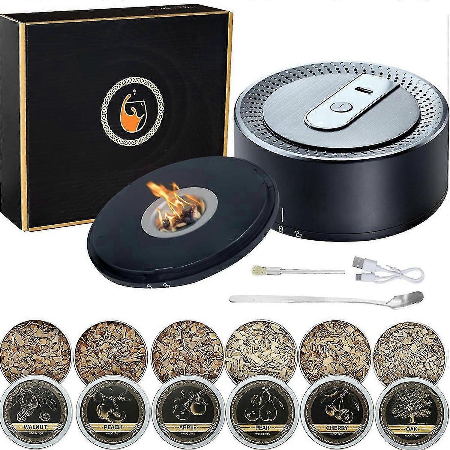 Electric Whiskey Smoker Kit with 6 Wood Chips, Rechargeable Cocktail Smoker Kit Built in Lighter,for Men,Dad,Husband.