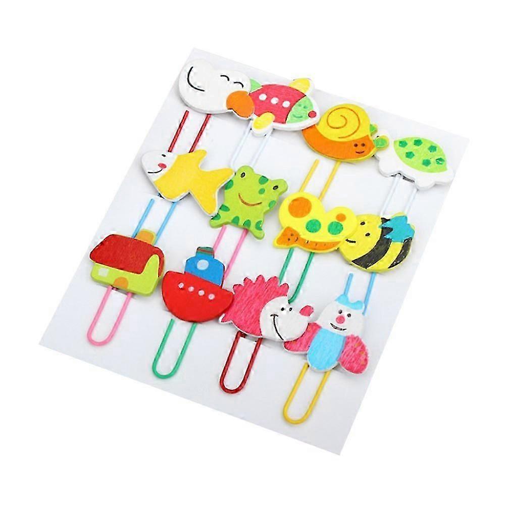 Wooden Animal Paper Clips Bookmark Set for Kids Study, 12Pcs 5x3x2cm