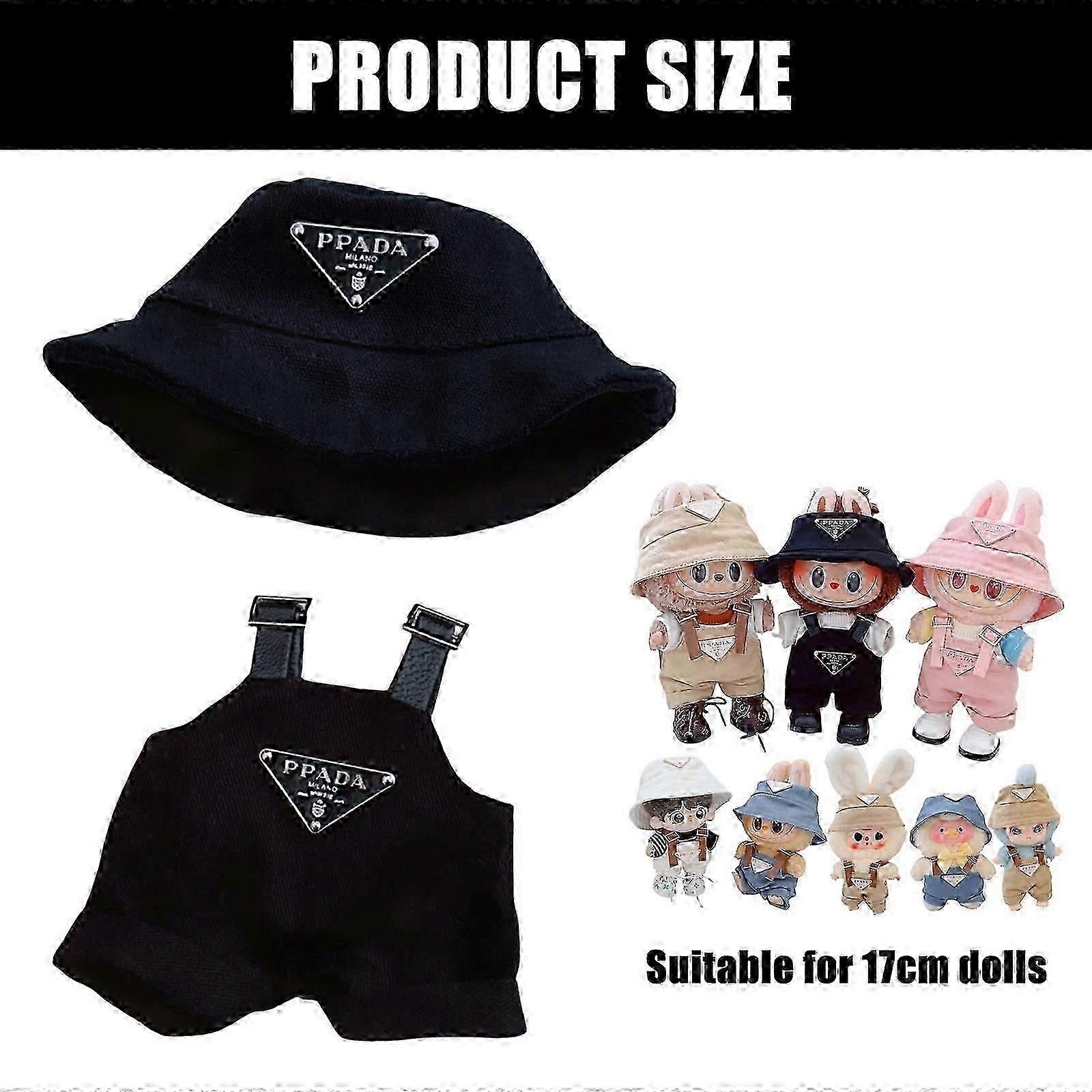Doll Clothing Set For 15-17cm Dolls Including Black Bucket Hat And Overalls For Dress up Game Doll Accessories brown brown brown brown brown