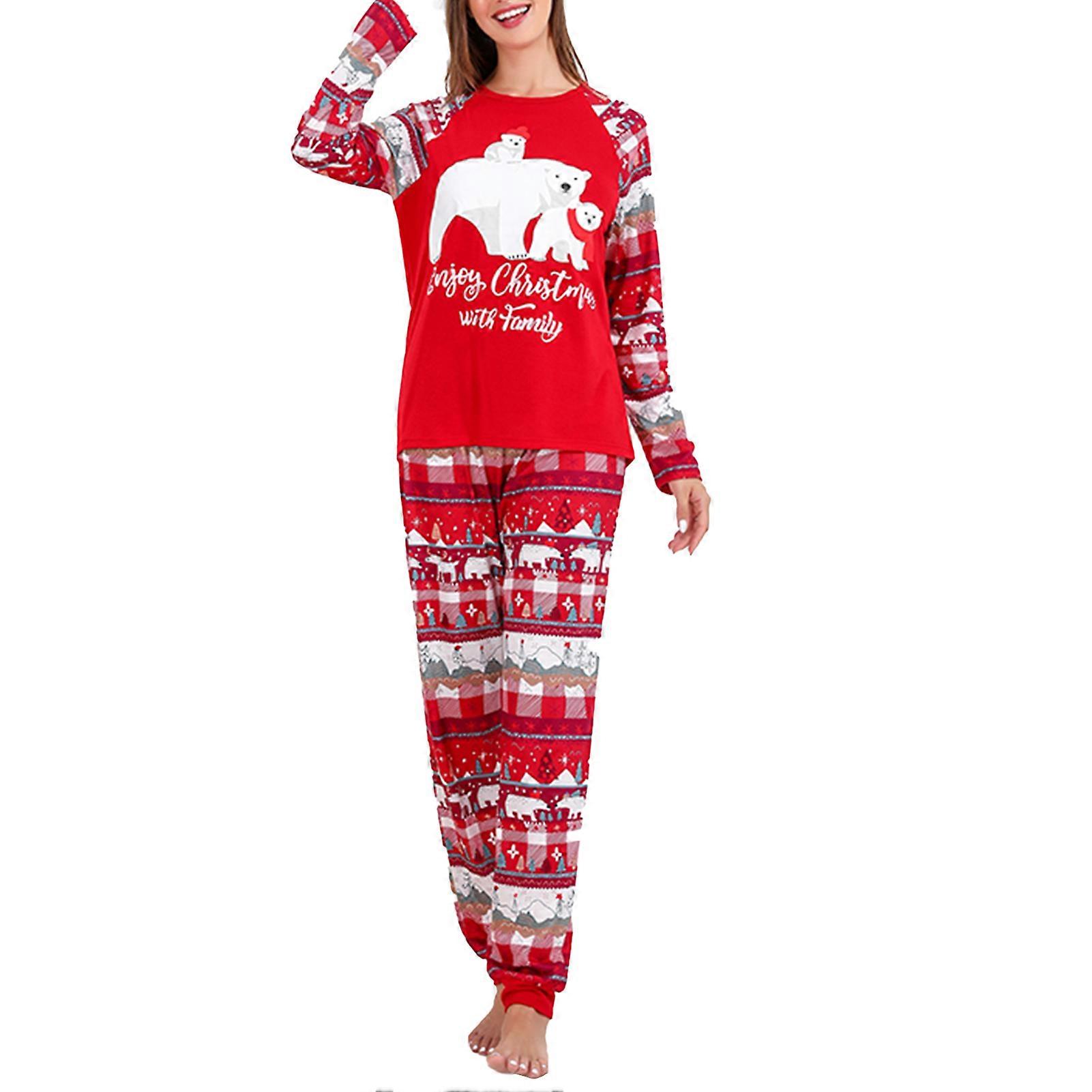 Parent Children Christmas Sleepwear Set Crewneck Long Sleeve Splicing Breathable Family Pajamas Matching Set Red WOMEN XL