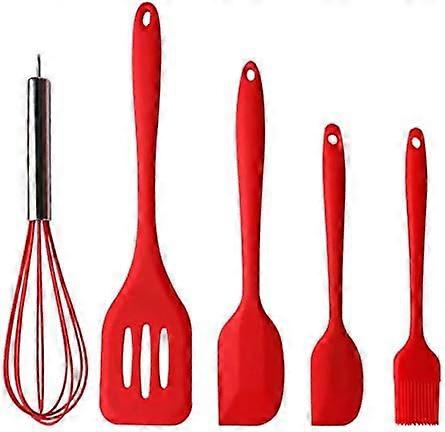 Silicone Spatula Set Kitchenware Utensils 5 Pieces Includes Small Brush, Small Scraper, Large Scraper, Egg Beater, Spatula for Cooking, Baking and Mix