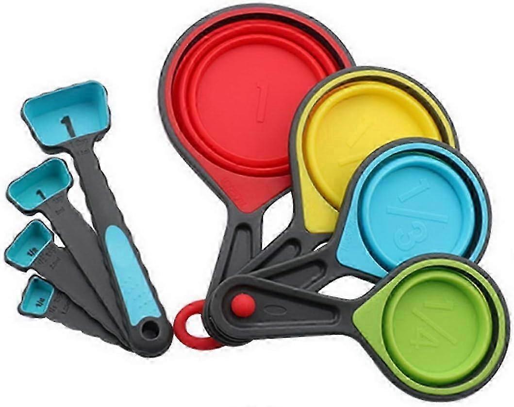 8-Piece Folding Silicone Measuring Spoons Set - Portable Cooking Tools with Creative Measurement Markings for Easy Use