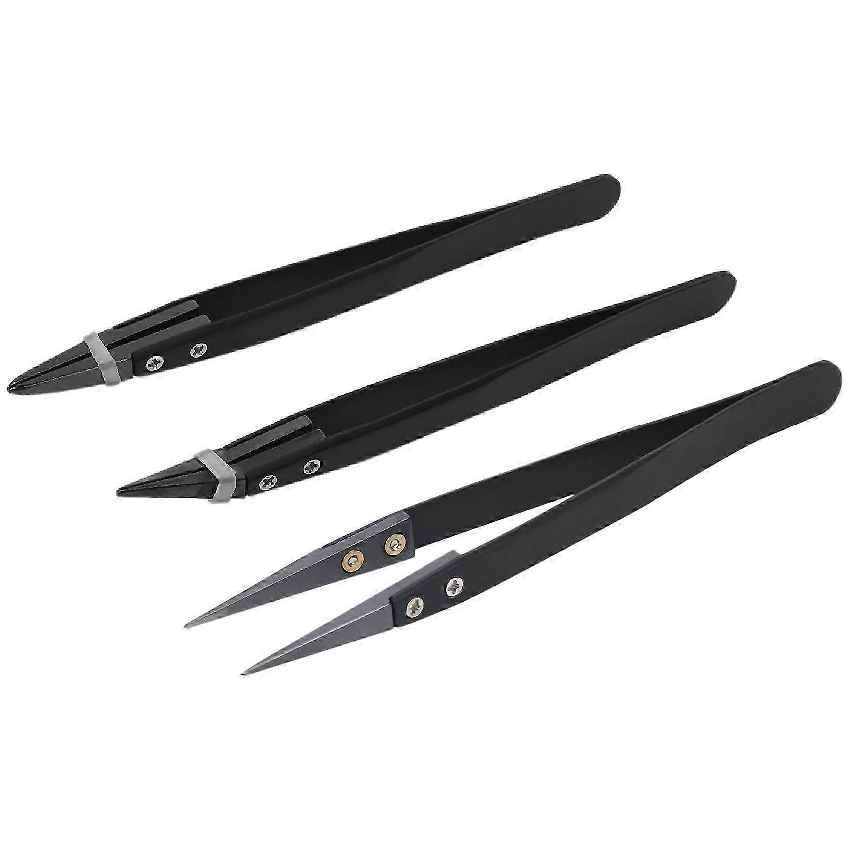 Black Ceramic Tweezers Set - Antistatic,Anticorrosion,Antimagnetic,Highly Heat Resistant(3Pack) JN