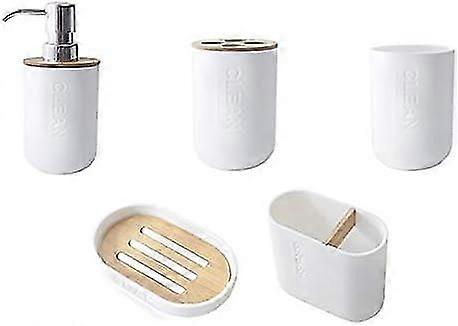 5 Piece Bamboo Bathroom Accessories Set With Toothbrush Holder, Tumbler, Soap Dispenser, Bathroom Bowl