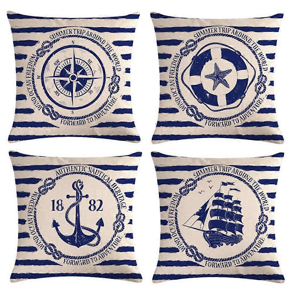 Set of Ocean Navigation Pillow Cases, Throw Cushion Cover Cotton Linen Pillowcase Home Decoration,45cm