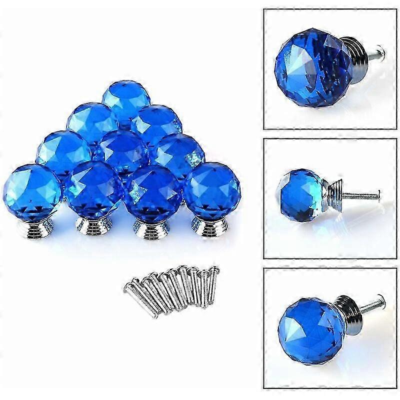 Set Of 10 Door Knob Handle Shape Diameter 30Mm Blue Crystal
