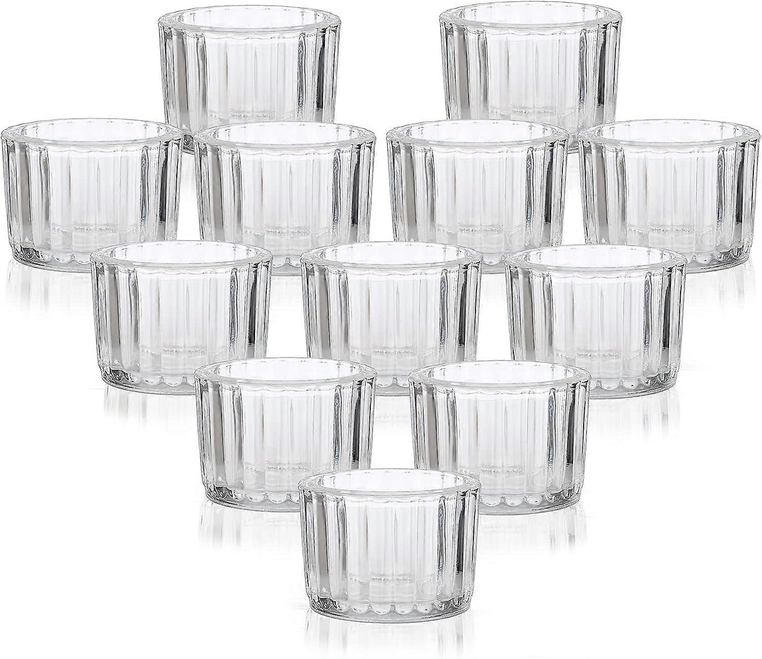 Set of 12 Clear Glass Tealight Candle Holders, Decorative Rhombus Glass Pillar Candle Stand, Table Centerpiece Votive Candle Holder for Wedding Birthd