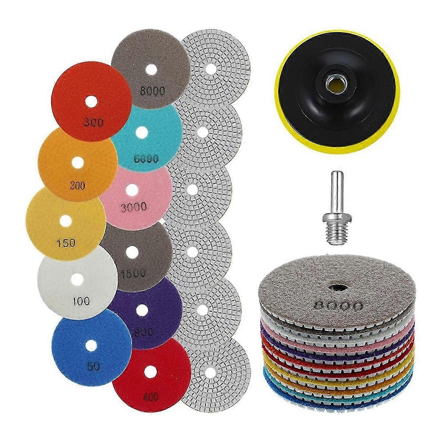 13PCS 4 Inch Diamond Polishing Pads Set,5/8In - 11 Backer Pad, 50-8000 Grit Pads,Stone Polish Pad, Grinder Polishing Kit
