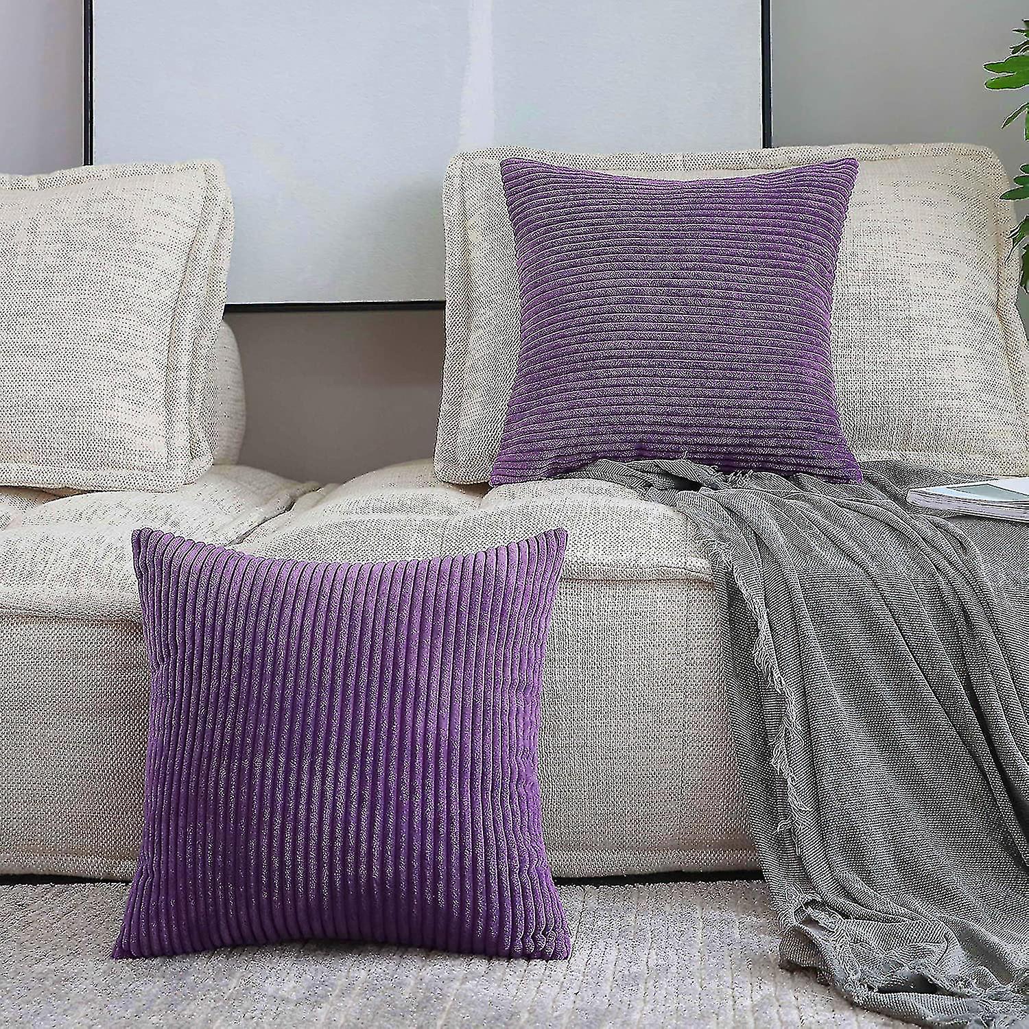 Set Of 2 Purple Pillows Covers Sofa Pillows Decorative Sets Striped Velvet Throw Pillow Covers, 16 X 16 Inch, 40cm, Purple