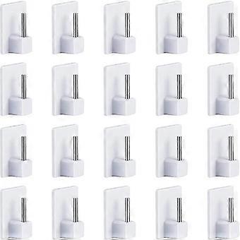 Set of 20 adhesive hooks for curtain packaging Quantity: Set of 20 self-adhesive hooks; Color is white; Dimensions: 2.4 x 1.7 cm (L x W); Size to fit curtain rods Material: These self-adhesive curtain hooks are made of high-quality plastic with self-adhesive backing, durable and easy to install, no tools required Easy to use: You just peel off the yellow caps and stick them on drywall; and they will work better on wood surfaces Purpose: These curtain hooks have good grip, which can hold the curtain rod firmly and not easy to fall off Note: These plastic hooks with sticks on the end are small parts, please do not put too heavy objects in them