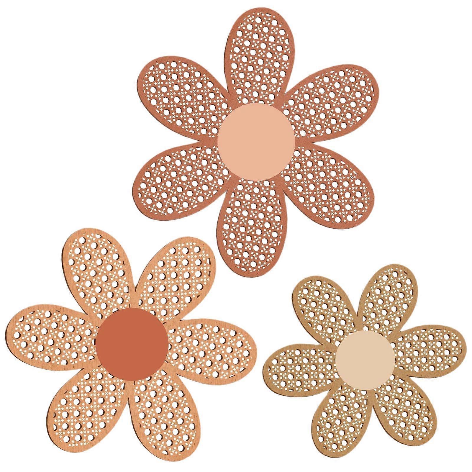 Set of 3Pcs Bohemian Wood Flower Wall Art Hanging Sign Rattan Floral Plaques Farmhouse Bedroom Home Decorations Gift