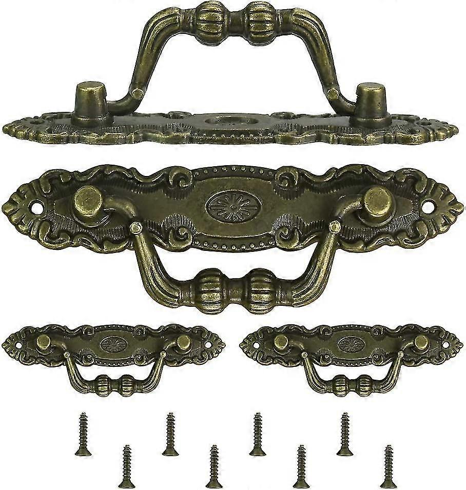 Set Of 4 Vintage Classic Bronze Drawer Pulls, Zinc Alloy Furniture Handles With 8 M2 Screws For Furniture