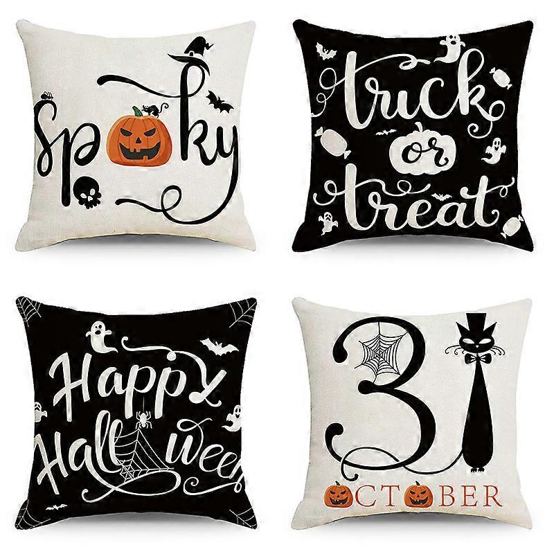 Set of 4 Decorative Halloween Throw Pillow Covers - for Sofa Daybed Home (45x45cm, Halloween)