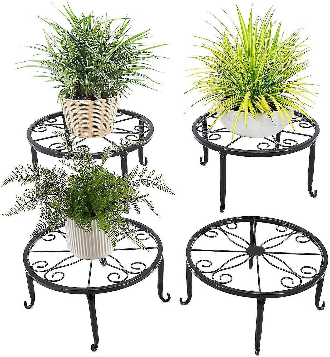 Set Of 4 Metal Iron Plant Stands, Indoor Or Outdoor, Black