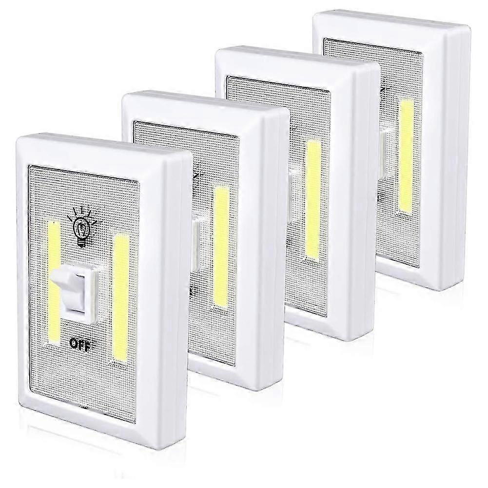 Optimal Illumination: This LED switch night light is equipped with high-quality LED strips that ensure clear visibility in dark spaces such as utility rooms, cabinets, closets, outdoor sheds, and garages. Its superior brightness makes it an essential addition to any poorly lit area. User-Friendly Operation: Featuring a classic switch for easy on/off control, this light is perfect for emergency situations such as power outages or outdoor nighttime tasks. Its simplicity and reliability make it a must-have in any household. Safe and Convenient Power Source: Powered by 3x AAA batteries (not included), these closet lights provide a reliable lighting solution without the need for electrical wiring. This makes them safe and ideal for use in areas where electricity is inaccessible or in emergency situations. Colour:White Material:plastic Package Contents: 4pcs x Closet Light