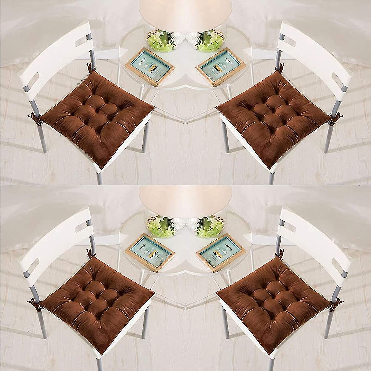 Set Of 4 Chair Pads 40 X 40 Cm Seat Cushions With Ties Soft Velvet Comfortable Square Cushions, For Dining Chairs Kitchen Living Room Patio Garden Ind