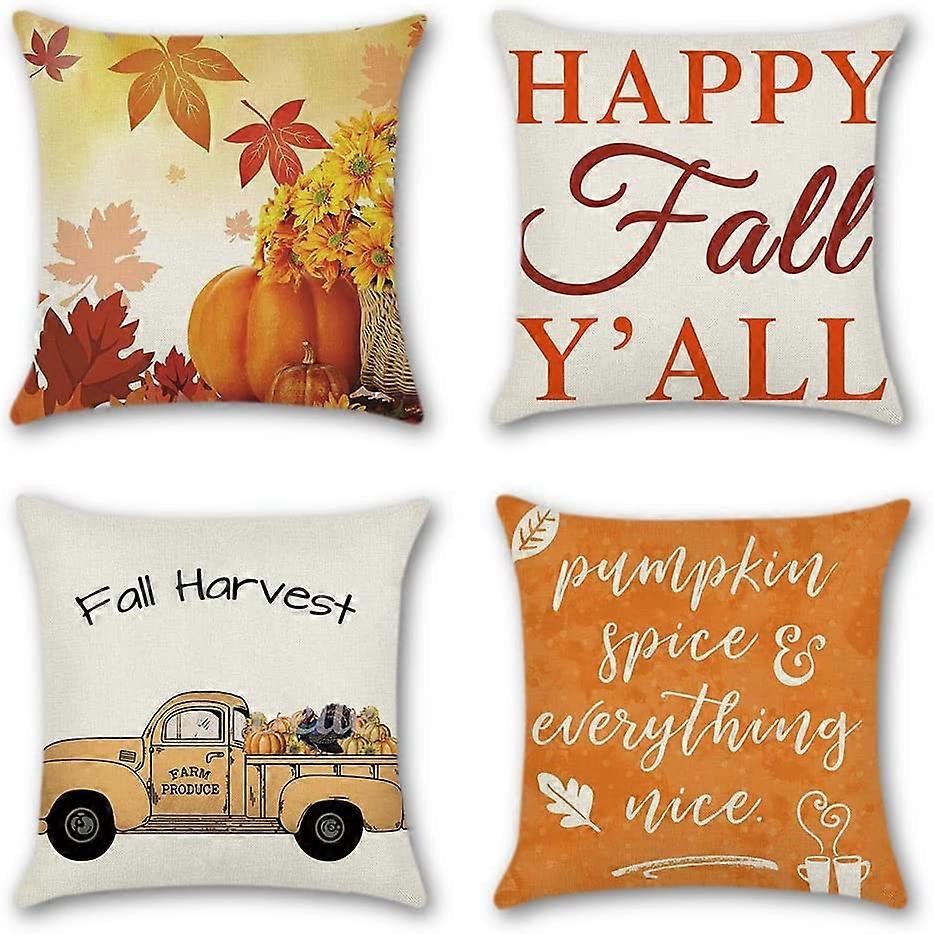 Set of 4 Cushion Covers Autumn Theme for Sofa Car Bedroom Home