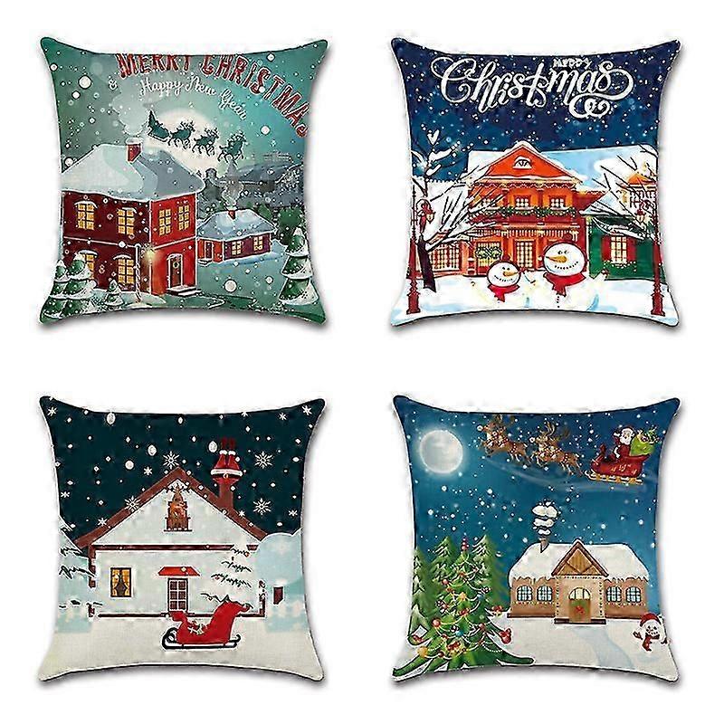 Set Of 4 Christmas Pillowcases Snowman Pillowcases