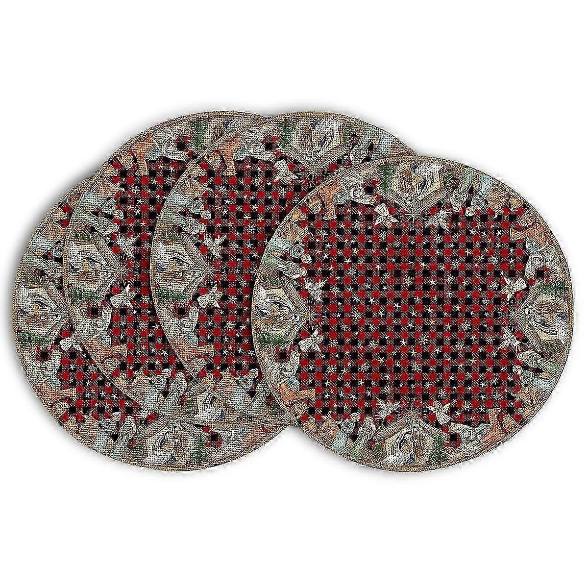 Set of 4 14 Inch Black Red Buffalo Plaid Christmas Round Placemats