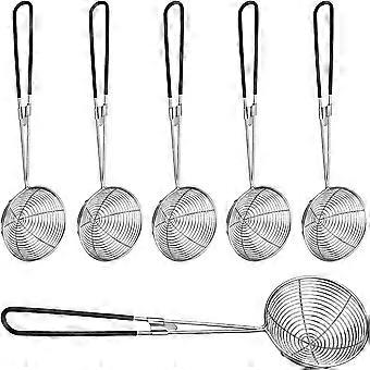 Suitable length: The total length is 30cm, which can protect your hands from the erosion of grease and grease, and also allow you to cook your favorite foods. High quality material: is made of high quality stainless steel, stain and rust resistant, non-toxic, tasteless, non-reactive with food, healthy and safe. Easy to store: Lightweight and convenient to use and clean and also dry, seamless construction, it can be stored in a utensil jar or hung on the wall after use to keep dry and clean. Multifunction: Perfect kitchen tool for frying the utensils you need to fry your fries, pasta, cooking, noodles and more. You can get: 6s fine mesh and our best quality service. If you have any problems, please contact us for a solution. Features - Made of stainless steel wire, anti-rust and anti-corrosion, durable enough. - Fine mesh can safely hold food while releasing grease and other residue. - Long handle design protects your hands from oil and grease during cooking. - Wipe gently with a cloth dampened in detergent and rinse with water. Specifications Material: Stainless steel and silicone Color: Silver Total length: 30 cm Spoon diameter: 8 cm Quantity: 6 pieces Package includes: 6 x Fondue