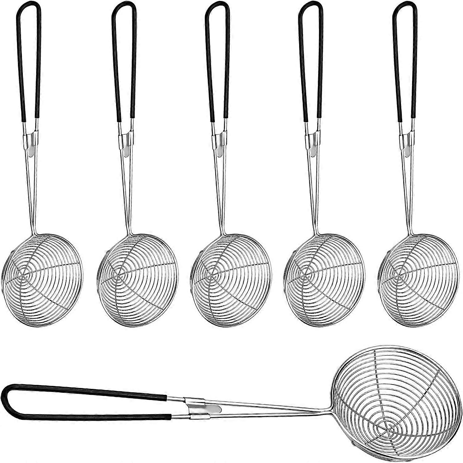 Set of 6 Fondue Pots, 30cm Small Stainless Steel Skimmer with Silicone Fine Mesh Handle for Hot Pot and Milk Tea