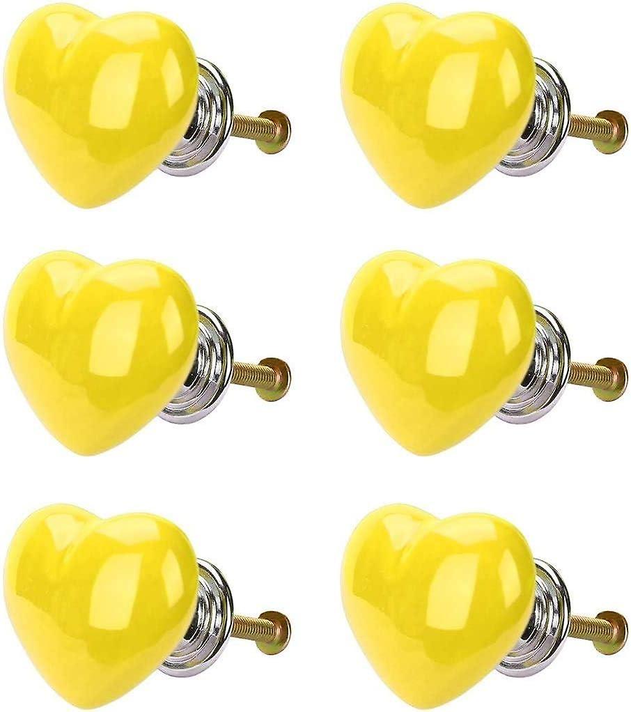 Set of 6 Vintage Ceramic Heart Shaped Door Knobs for Cabinet Cupboard Kids Room - Yellow