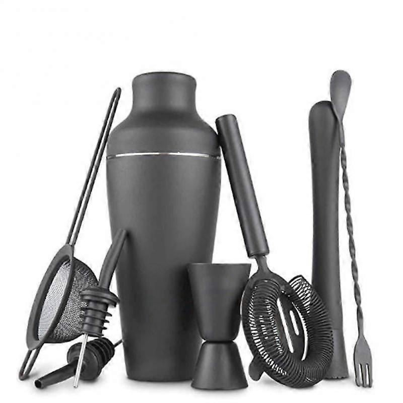 8-piece Set Matte Black Stainless Steel Cocktail Shaker Set Bar Tools For Bartender