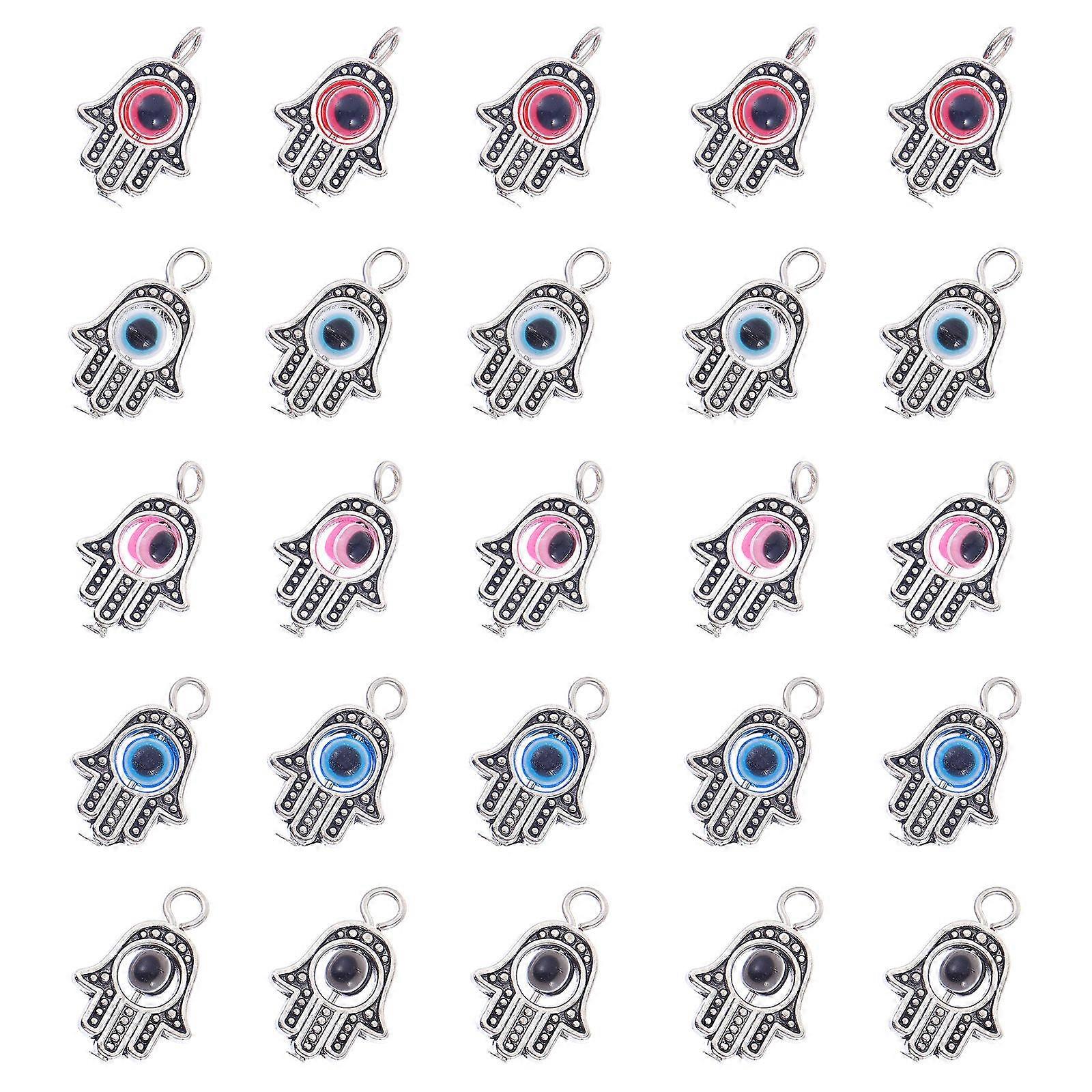 Jewelry Hanging Charms Devil Eye Palm Shaped Zinc Alloy Pendants Decor Pink Color Diy Crafting 25Pcs