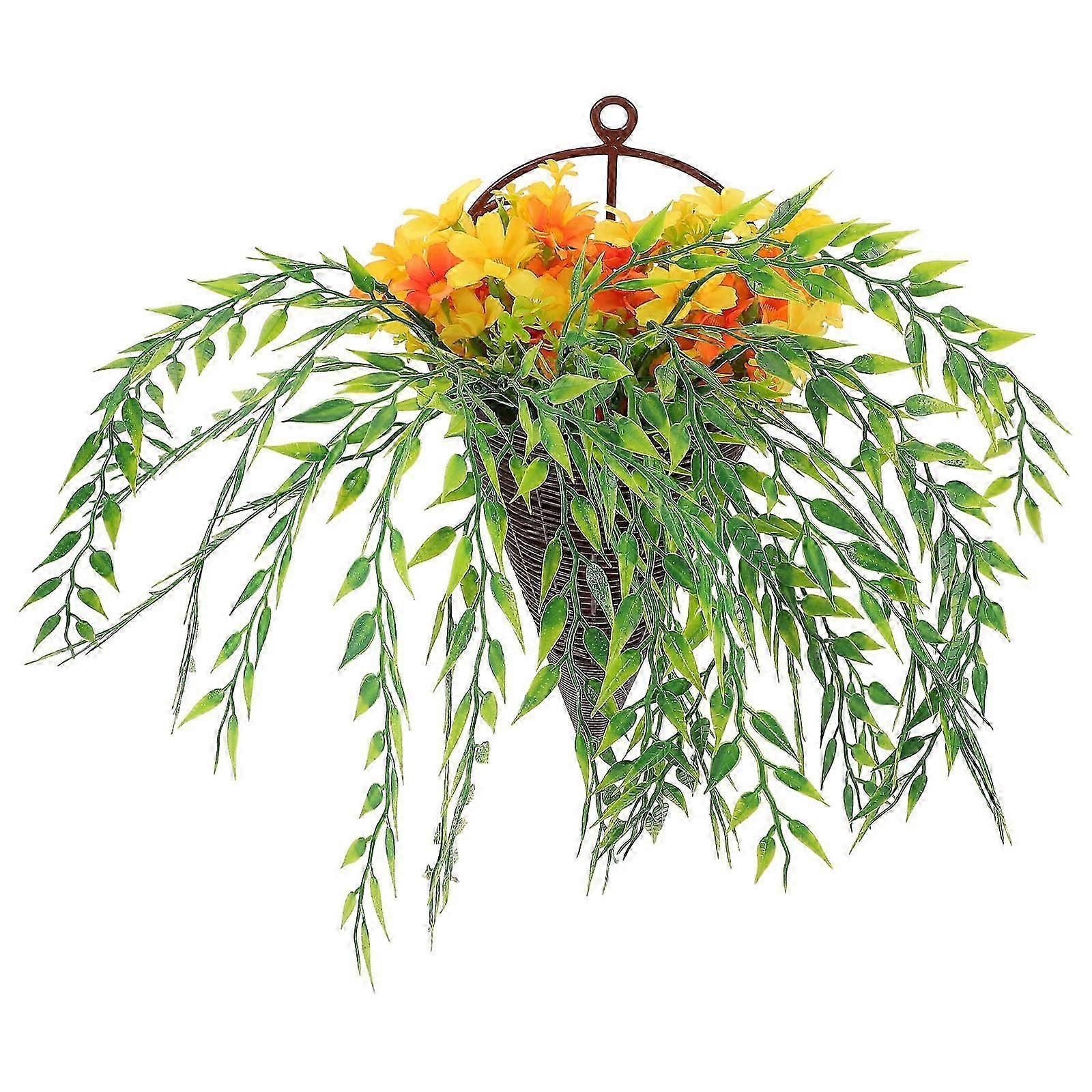 Simulation Flower With Basket Artificial Hanging Baskets Home Decor Green 32X14Cm Water Free Maintenance 1Pack